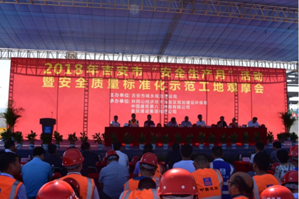 6月26日,江西省吉安市2018年“安全生產(chǎn)月”活動(dòng)暨安全、質(zhì)量標(biāo)準(zhǔn)化示范工地觀摩會(huì)在江西益豐泰項(xiàng)目現(xiàn)場(chǎng)召開,此次也是江西省潔凈廠房類項(xiàng)目的首次觀摩會(huì)。吉安市城鄉(xiāng)規(guī)劃建設(shè)局總工程師范川、吉安市建管科長(zhǎng)劉振華、吉安市質(zhì)監(jiān)站站長(zhǎng)林保衛(wèi)、井岡山經(jīng)開區(qū)黨工委委員、管委會(huì)副主任羅厥宏、井岡山經(jīng)開區(qū)調(diào)研員、規(guī)劃建設(shè)環(huán)保局局長(zhǎng)詹軍慶、井開區(qū)質(zhì)監(jiān)站站長(zhǎng)羅強(qiáng)、江西益豐泰項(xiàng)目總監(jiān)謝凡、華南公司副總經(jīng)理趙云蕾及市轄各區(qū)縣質(zhì)監(jiān)站領(lǐng)導(dǎo)等300余名業(yè)界同行參加了此次活動(dòng)。