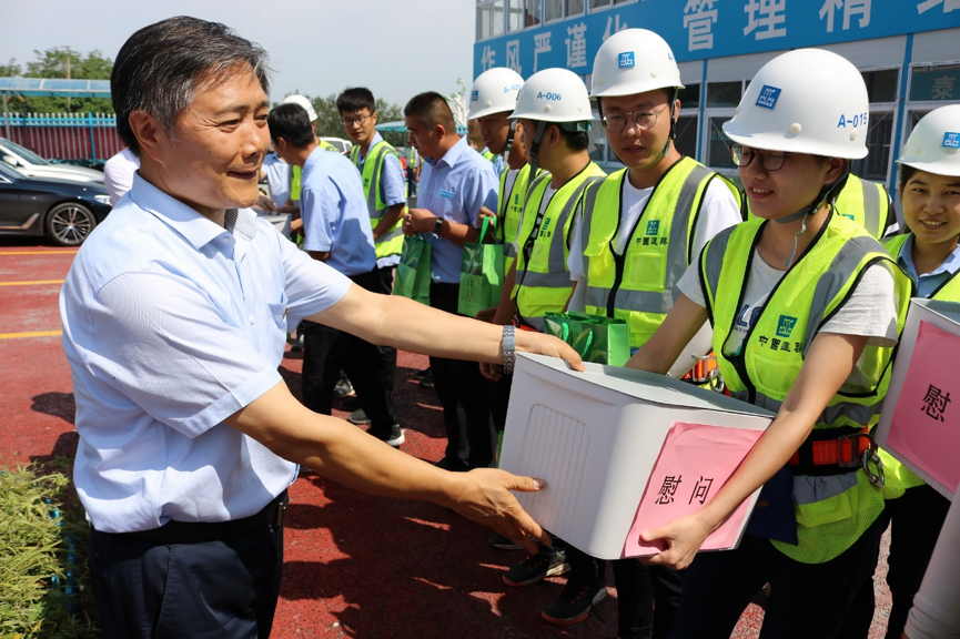 8月20日,山東省建設(shè)工會主席薛希法、副主席邵永立一行來到公司濟南融創(chuàng)文旅城項目開展調(diào)研暨“送清涼”慰問活動。