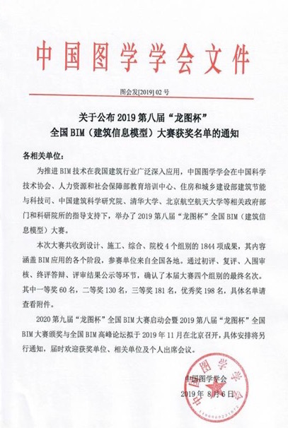 公司在第八屆“龍圖杯”全國(guó)BIM大賽中喜獲3項(xiàng)一等獎(jiǎng)