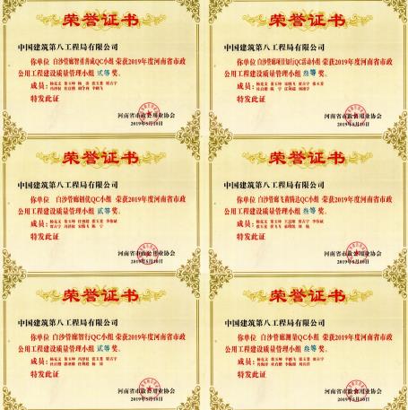 白沙綜合管廊項(xiàng)目在2019年度“河南省市政公用工程建設(shè)優(yōu)秀質(zhì)量管理小組”活動(dòng)成果發(fā)布會(huì)獲多項(xiàng)QC成果
