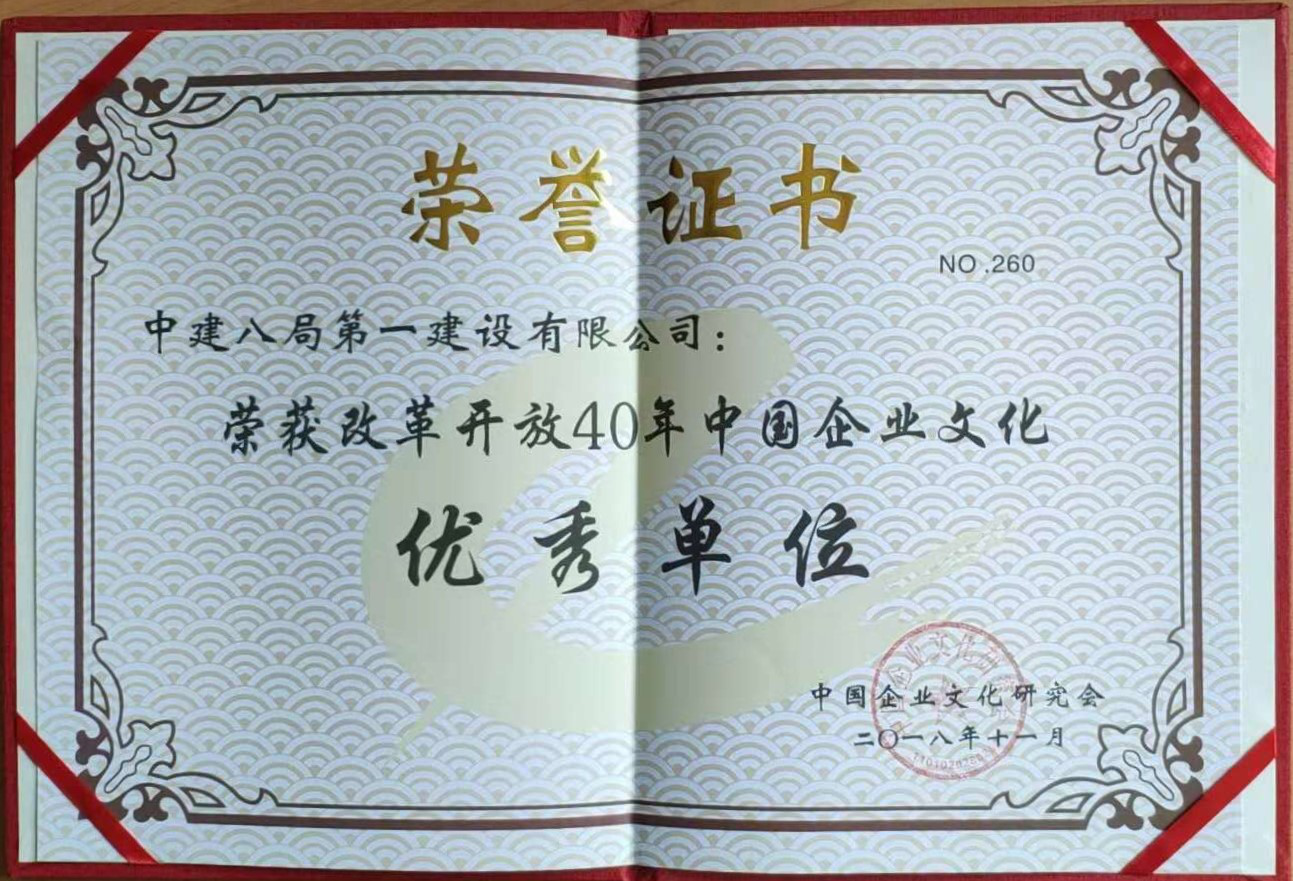 公司榮獲“改革開放40年中國企業(yè)文化優(yōu)秀單位”稱號(hào)