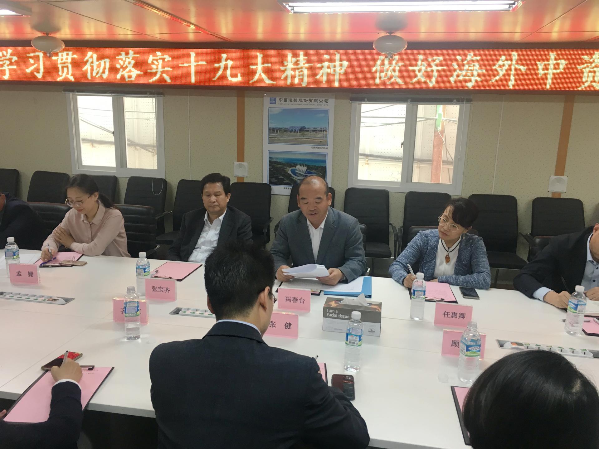 5月21日,中國駐濟州總領(lǐng)館與濟州中國商會黨建工作交流會在由中建八局承建的濟州夢想大廈新建工程項目舉行。 中國駐濟州總領(lǐng)館總領(lǐng)事馮春臺、副總領(lǐng)事張寶齊、領(lǐng)事任惠卿、副領(lǐng)事吳錫路、副領(lǐng)事孟珊一行到會指導(dǎo),濟州中國商會會長、夢想大廈項目經(jīng)理張健、綠地總指揮顧霞芳、國航代表齊永軍、東航代表魯韻梓等17位中資企業(yè)黨員參加了此次會議。