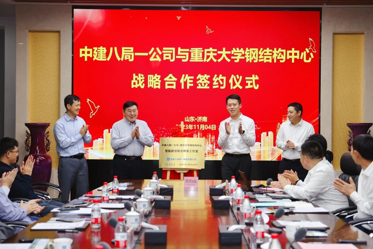 11月4日,中建八局一公司與重慶大學鋼結(jié)構(gòu)中心智能建造聯(lián)合研發(fā)工作室揭牌儀式暨關(guān)鍵課題啟動會在濟舉辦。