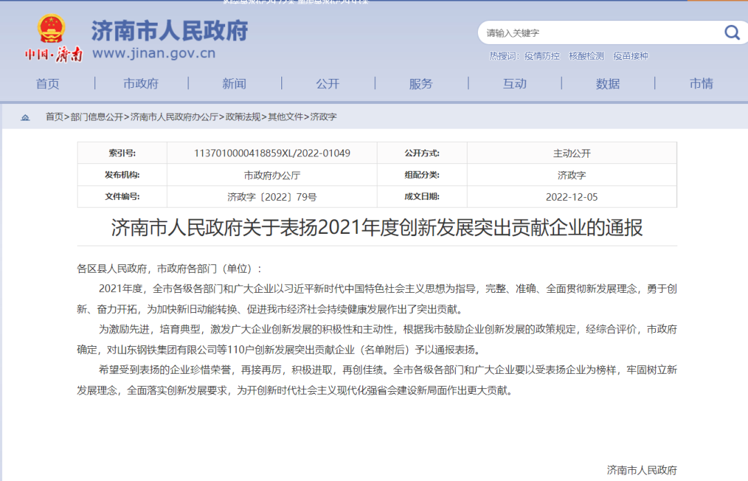 中建八一連續(xù)3年位列濟(jì)南市創(chuàng)新發(fā)展突出貢獻(xiàn)企業(yè)榜首
