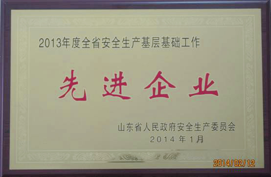 公司榮獲“山東省2013年度安全生產(chǎn)基層基礎(chǔ)工作先進(jìn)企業(yè)”榮譽(yù)稱號(hào)