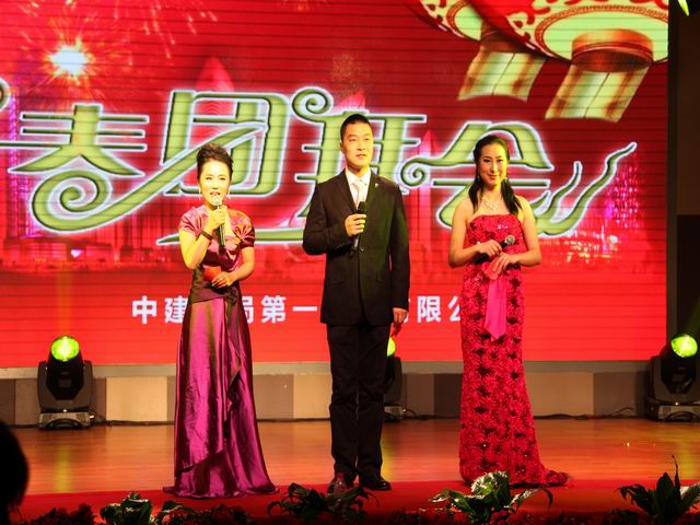團拜會演出在富有激情的舞蹈《南非風情》中拉開了帷幕。整臺演出精彩紛呈,高潮迭起。員工自編自演的各類節(jié)目豐富多彩,幸運大抽獎更是讓員工驚喜連連,演出現(xiàn)場歡聲笑語不斷。相聲《咱公司的那點事》、小品《牛郎與織女》、啞劇《候車室的故事》讓現(xiàn)場觀眾笑成一片;歌曲《相親相愛》唱出了一公司員工團結互助是一家人的心聲;歌伴舞《荷塘月色》在現(xiàn)場燈光和舞臺的配合下,為大家呈現(xiàn)了一幅唯美的畫面;別具風格的三句半《公司喜事多》,讓大家過了一把情景劇版三句半隱;情景詩朗誦《閃亮的日子 閃亮的青春》則為大家講述了一群年輕人到工地后半年的切身感受;歌手楊坤的《無所謂》被演員模仿的惟妙惟肖,足以以假亂真;舞蹈串燒《青春旋律》讓大家感受到了公司年輕人的青春活力;小品《施工情》講述了公司員工舍小家顧大家、令行禁止、使命必達的精神,得到了現(xiàn)場觀眾的共鳴。演出在氣勢磅礴的《走向復興》中圓滿落幕,出席團拜會的領導同志走上舞臺,同全體演員合影留念。