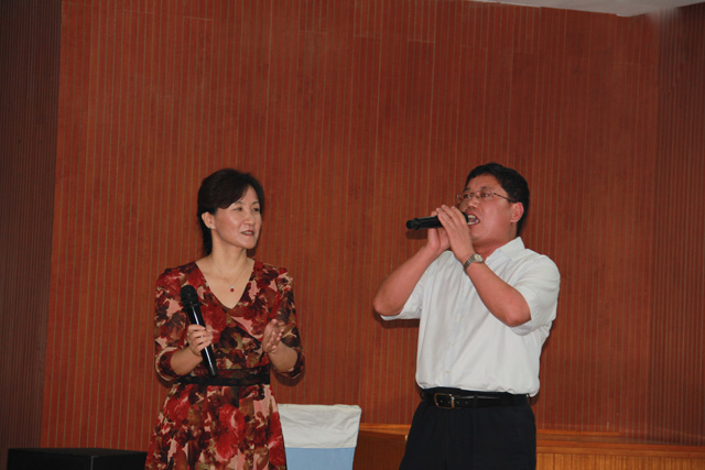 “揮揮手微笑著告別昨天,擁抱更蔥蘢的未來”,19點(diǎn)30分,晚會在一首《最美的答案》中拉開序幕。隨后大家紛紛亮出自己的才藝,模仿大比拼、小品、歌劇、合唱等精彩的節(jié)目將晚會逐步推入高潮。新員工王政模仿的費(fèi)玉清,無論從聲音還是形體動作上都惟妙惟肖,讓大家贊口不絕。小品《一公司小夫妻》采用經(jīng)典――《實(shí)話實(shí)說》風(fēng)格,演繹了大家眼中的一公司,其中的精彩對話讓大家捧腹。教官團(tuán)隊(duì)表演的格斗、拳術(shù)、棍術(shù)也讓大家大開眼界,為晚會增添了另一道光彩。面對現(xiàn)場熱烈的氣氛,公司領(lǐng)導(dǎo)也紛紛上臺獻(xiàn)上了精彩的表演,將整個晚會推向另一個高潮。董事長李永明為大家傾情演唱了《雨花石》和《活出個樣子來給自己看》,希望新員工們像雨花石學(xué)習(xí),經(jīng)得住平凡與寂寞,在平凡的崗位上做出不平凡的業(yè)績。黨委書記許紅聲情并茂,為大家朗誦了詩歌《青春萬歲》,展現(xiàn)了青春的無限美好與活力,她還演唱了《隱形的翅膀》,鼓勵大家在逆境中也要善于看到希望,堅(jiān)強(qiáng)的奮斗下去。人力資源總監(jiān)王有標(biāo)也為大家演唱了《凡人歌》,贏得了陣陣掌聲。培訓(xùn)人員工作團(tuán)隊(duì)也為大家獻(xiàn)上了《相逢是首歌》。