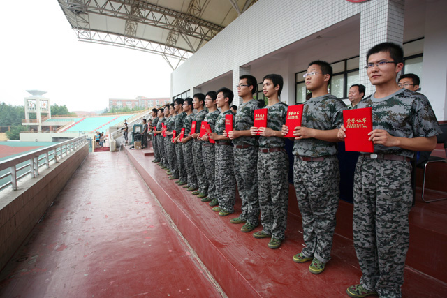 照片3:主席臺領(lǐng)導(dǎo)檢閱軍訓(xùn)成果