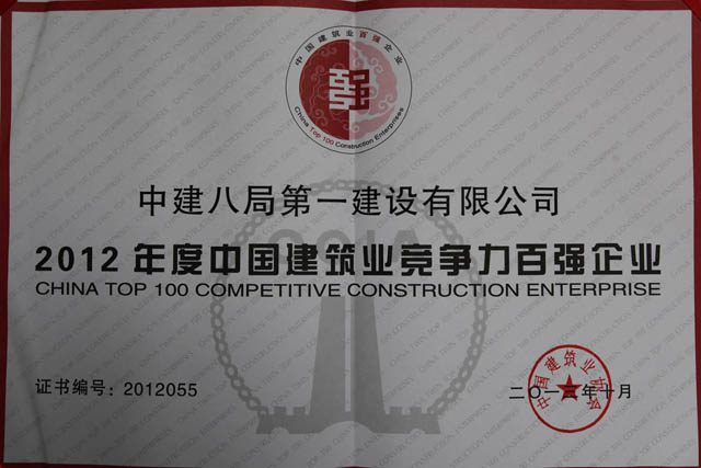10月17日,2012年度中國建筑業(yè)企業(yè)雙百強(qiáng)發(fā)布會(huì)在廈門隆重召開。大會(huì)揭曉了雙百強(qiáng)評價(jià)結(jié)果,公司榮獲深具影響力和權(quán)威性“中國建筑業(yè)競爭力百強(qiáng)企業(yè)”稱號(hào)。