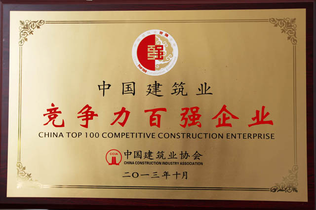 公司榮獲中國建筑業(yè)競爭力百強(qiáng)企業(yè)稱號(hào)