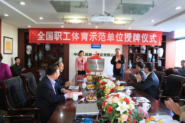 儀式上,中建體協(xié)秘書長彭桂臣宣讀了《中華全國總工會、國家體育總局關于命名全國職工體育示范單位的決定》,國家體育總局群體處處長王小寧為一公司授牌。