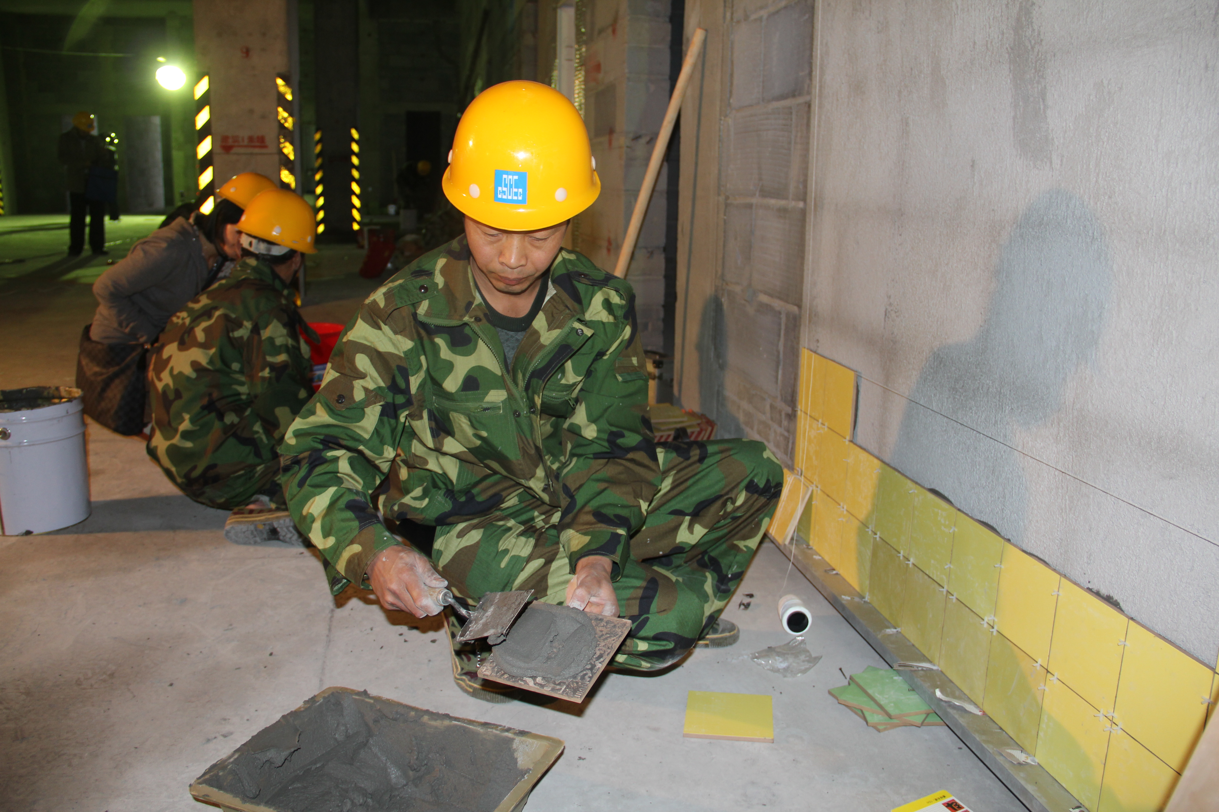 寧總首先致開幕詞,裁判員代表、勞務(wù)工人代表分別進行了宣誓。上午9時整,公司工會辦公室副主任畢延寶宣布比賽正式開始。本次比賽分為理論知識考試和技能實操比賽,比賽工種包括砌筑工、鑲貼工。在作業(yè)比賽中,參賽的勞務(wù)工人紛紛展示了各自精湛的技藝,令在場的觀摩人員連聲稱贊,各比賽團隊為充分展現(xiàn)自身實力,均拿出了“看家本領(lǐng)”,技能比賽進行得十分激烈。