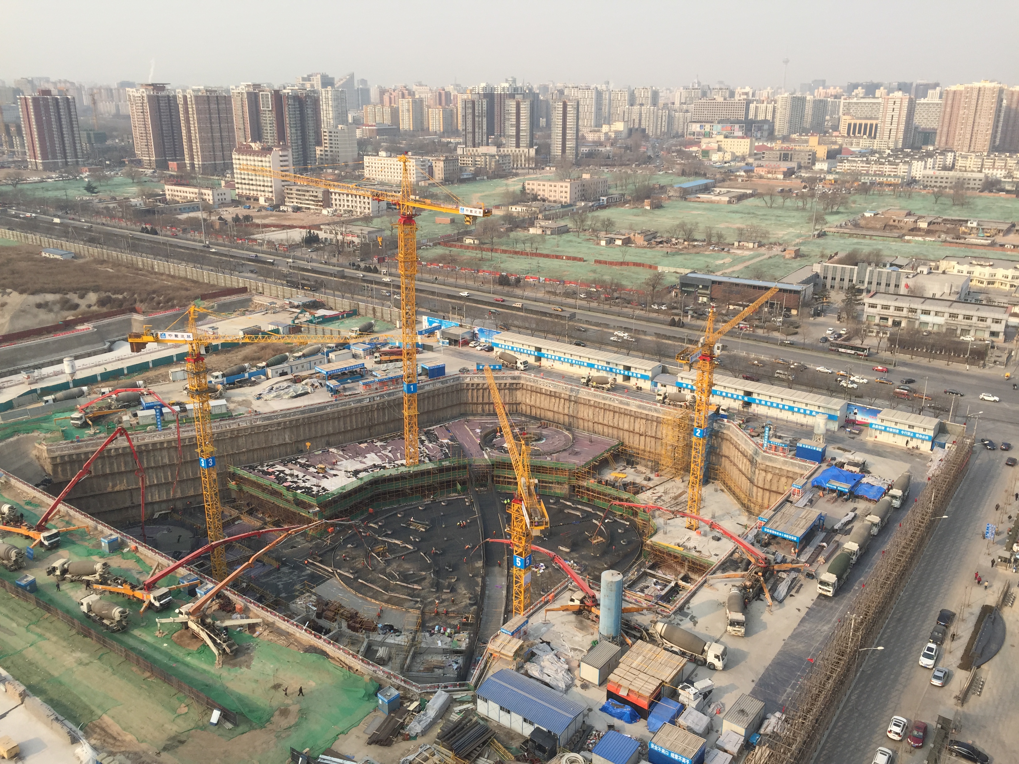 屋漏偏逢連陰雨。據(jù)項(xiàng)目管理人員郭利回憶:光是將原先的降水方案推倒重來就占用了項(xiàng)目管理人員的大部分精力,而這時又偏偏遇上了北京發(fā)布的空氣污染紅色預(yù)警――現(xiàn)場全面停工,禁止一切施工;再加上進(jìn)入冬季,土層漸凍,施工大受影響。眼看著離年底越來越近,看著相對滯后的工期,他們心急如焚。