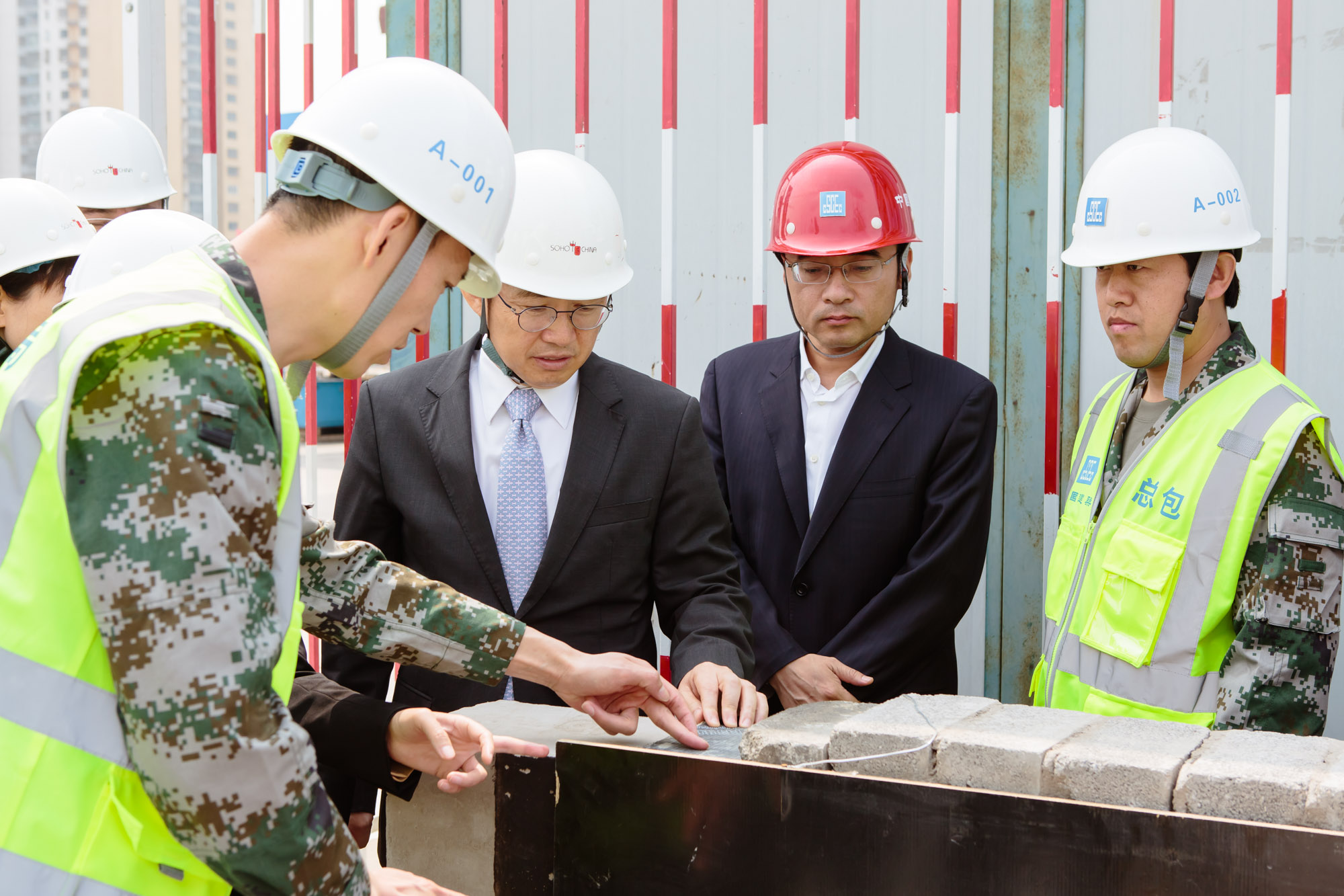 4月26日,同樣是在麗澤SOHO項(xiàng)目現(xiàn)場,潘石屹拿起安全帽,親筆寫下“中建八局的朋友們,麗澤SOHO工地是我目前看到管理最好的工地,感謝你們,加油!你們的朋友――潘石屹”,并表示,“我們再過來看,覺得交給你們是放心的”,“八局的BIM是非常先進(jìn)”,“看到的現(xiàn)場,管理非常好”。