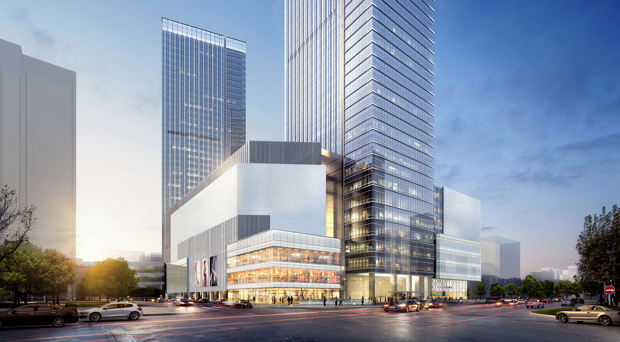 本工程總建筑面積約39萬(wàn)㎡,由兩棟超高層塔樓和裙房組成。1#塔樓為5A級(jí)寫字樓,主體高度185m。2#樓為超高層公寓,高度176米。商業(yè)裙房地下3層,地上8層,結(jié)構(gòu)高度46.15m。