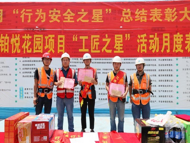 公司東莞魯能鉑悅花園項目舉行安全教育大會暨行為“安全之星”、“工匠之星”表彰大會