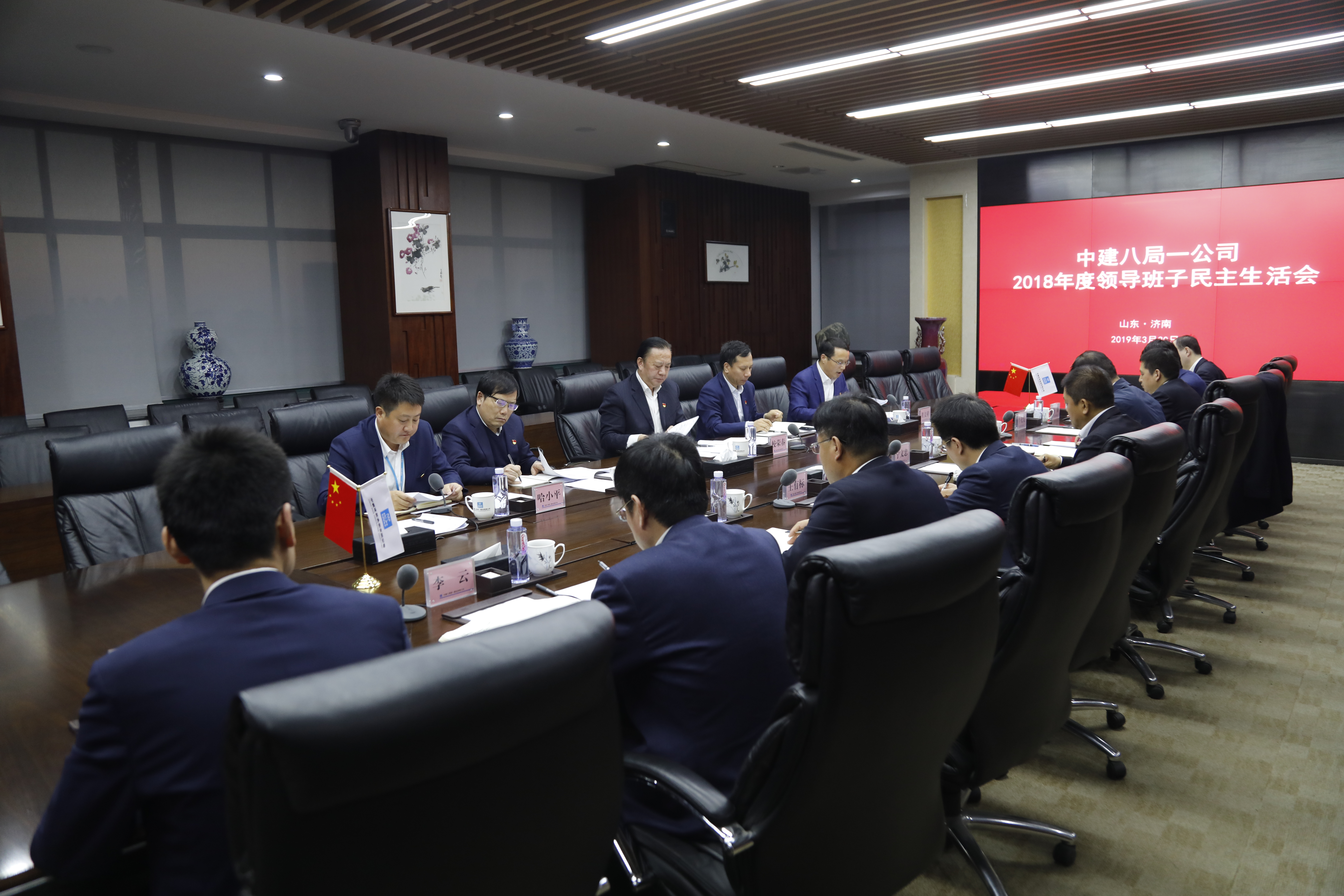 3月30日,中建八局一公司黨委召開(kāi)2018年度黨員領(lǐng)導(dǎo)干部民主生活會(huì)。中建八局黨委書(shū)記、董事長(zhǎng)校榮春,山東分局黨委書(shū)記、局長(zhǎng)陳建設(shè),局黨委工作部部長(zhǎng)凌長(zhǎng)連到會(huì)指導(dǎo)。公司黨委書(shū)記、董事長(zhǎng)董文祥主持會(huì)議,領(lǐng)導(dǎo)班子全體成員參會(huì)。