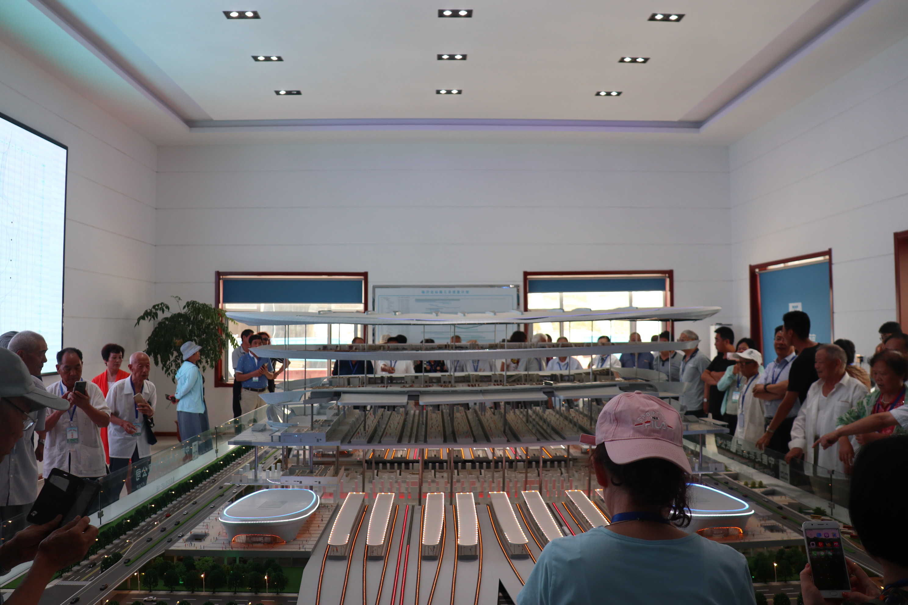 老干部們下車后親切的與我們握手,異常的激動,對我們表達(dá)了感激之情。老干部們移步進(jìn)入辦公區(qū)沙盤展廳,形象生動的視頻介紹、直觀立體的全自動升降模型、展現(xiàn)了魯南高鐵站房的施工工藝、質(zhì)量優(yōu)化、整體布局……技術(shù)工程師劉方凱、實(shí)驗(yàn)室主任王光福貼心的為老干部們講解,臨沂北站站房地鐵層、城市通廊層、廣場層、承軌層、候車層、商業(yè)夾層等各部位的使用功能及特點(diǎn),美觀規(guī)整的南北對稱格局,也吸引了一大批老干部的“眼球”。其中一位老干部,凝視著墻壁上的五站分布圖,詢問到,臨沂真的要通高鐵嗎,以后的孩子們真是太幸福了。此時,田書記也對我們的站房模型給予了肯定和高度的評價:“臨沂走出去,發(fā)展起來的愿望就要實(shí)現(xiàn)了。”(王曦)