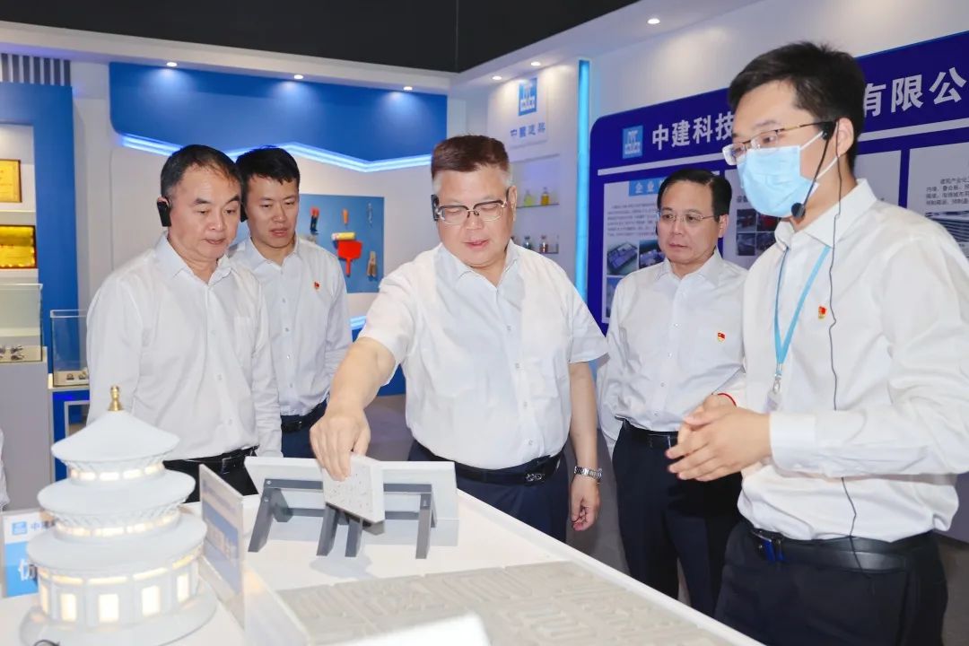 指導(dǎo)組一行先后深入濟(jì)南都市陽臺(tái)、黃河體育中心專業(yè)足球場項(xiàng)目現(xiàn)場,了解項(xiàng)目建設(shè)歷程、安全質(zhì)量管理、創(chuàng)新技術(shù)應(yīng)用等方面情況,肯定了項(xiàng)目堅(jiān)持黨建引領(lǐng)、建強(qiáng)支部堡壘取得的成效。在中國建筑綠色產(chǎn)業(yè)園(濟(jì)南),指導(dǎo)組一行走進(jìn)建筑產(chǎn)業(yè)化工廠、新型模架智造基地、BIM+機(jī)電一體化智造基地,近距離參觀產(chǎn)品生產(chǎn)線,與一線產(chǎn)業(yè)工人深入交流,了解企業(yè)自主研發(fā)的智慧工廠管理平臺(tái)及產(chǎn)品應(yīng)用情況。