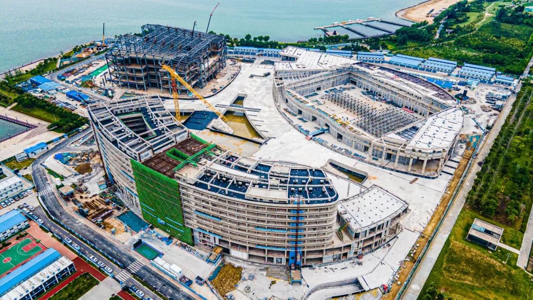 目前,項(xiàng)目主體結(jié)構(gòu)完成約95%,酒店及會(huì)展中心區(qū)域已全面封頂,正處于二次結(jié)構(gòu)、鋼結(jié)構(gòu)及裝飾裝修階段。