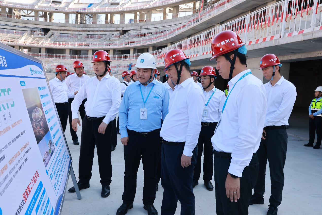 當(dāng)天下午,調(diào)研組一行到黃河體育場(chǎng)項(xiàng)目現(xiàn)場(chǎng)調(diào)研,實(shí)地查看了施工現(xiàn)場(chǎng),參觀了黨建展廳,聆聽了項(xiàng)目綜合匯報(bào),了解項(xiàng)目履約管理、商務(wù)管理、創(chuàng)新技術(shù)應(yīng)用等方面情況,詳細(xì)詢問了解項(xiàng)目在提升精益管控、人均效能方面的具體做法,了解公司制度規(guī)范的落地實(shí)施情況。
