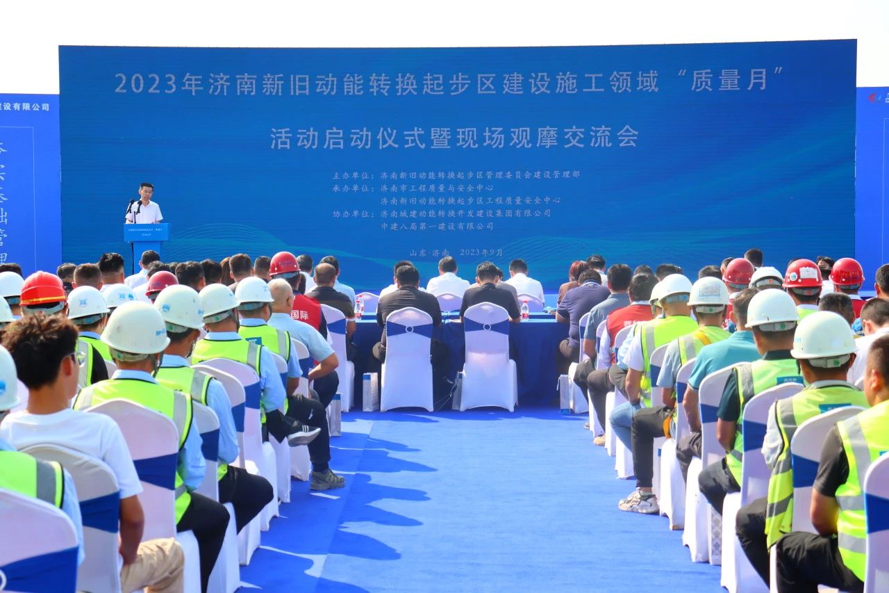 9月8日,2023年濟(jì)南新舊動(dòng)能轉(zhuǎn)換起步區(qū)建設(shè)施工領(lǐng)域“質(zhì)量月”活動(dòng)啟動(dòng)儀式暨現(xiàn)場觀摩交流會(huì)在中建八局一公司承建的黃河體育中心專業(yè)足球場項(xiàng)目舉行。濟(jì)南市住房和城鄉(xiāng)建設(shè)局、起步區(qū)管委會(huì)、濟(jì)南城建集團(tuán)、中建八局一公司及各街道辦事處、建設(shè)、施工、監(jiān)理(全詢)單位共200余人參與。
