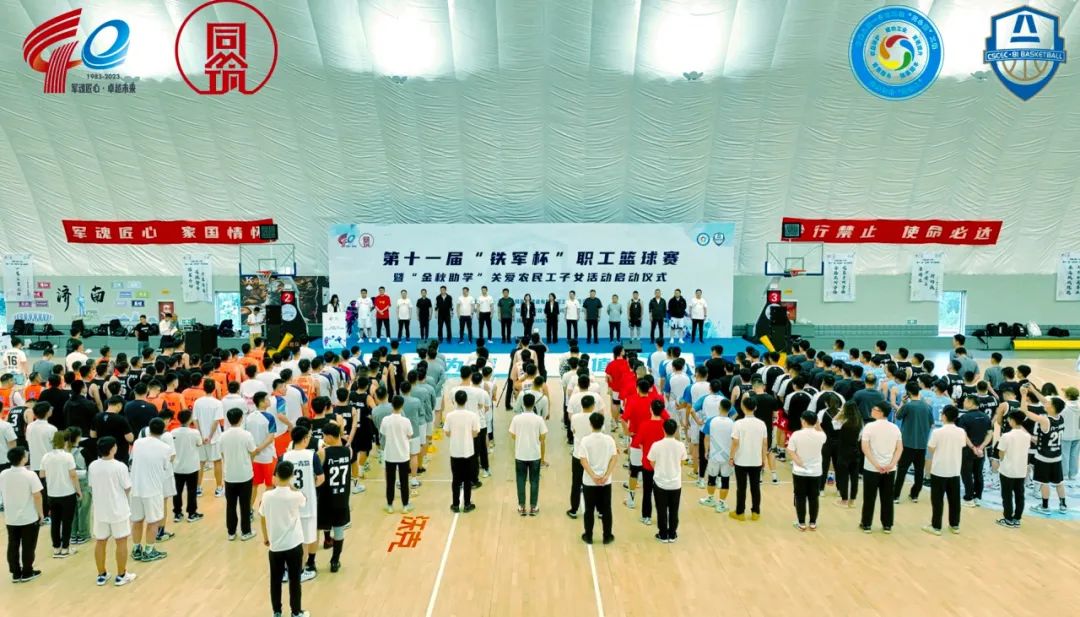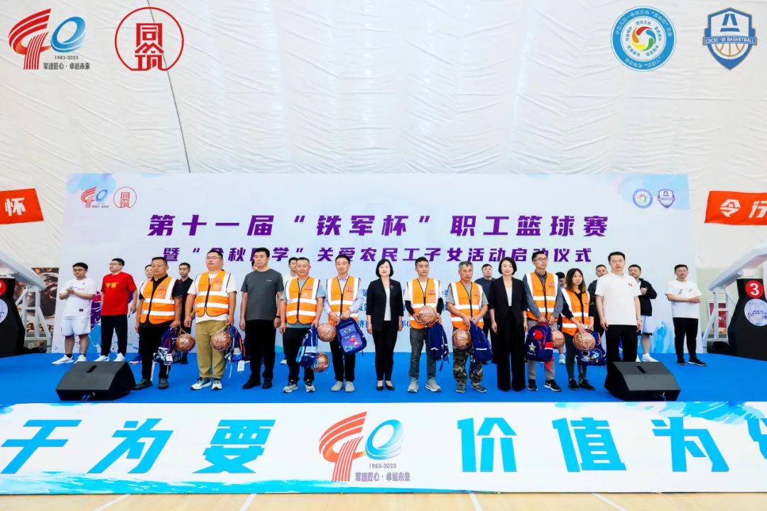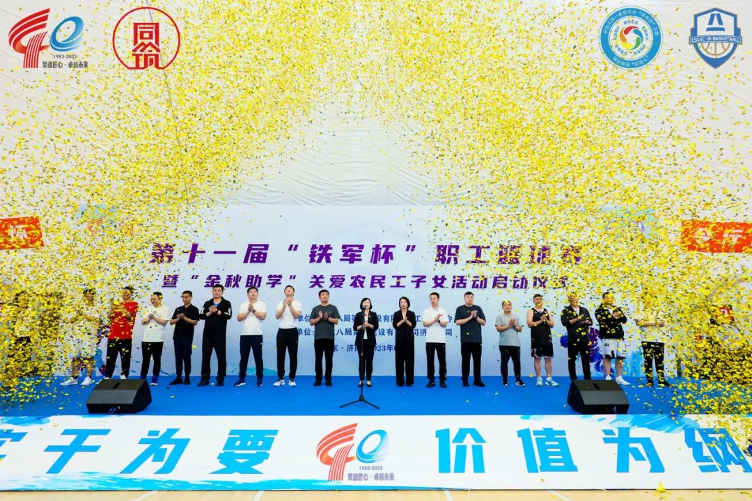 9月22日,中建八局一公司第十一屆“鐵軍杯”職工籃球賽暨“金秋助學”關愛農民工子女活動啟動儀式在濟南鳳凰山·沃克體育公園舉行,濟南市總工會黨組成員、副主席申世平,中建八局一公司副總經理霍文濤,黨委副書記、工會主席聶麗,工會工作部、濟南公司相關負責人及17支參賽隊伍參加。