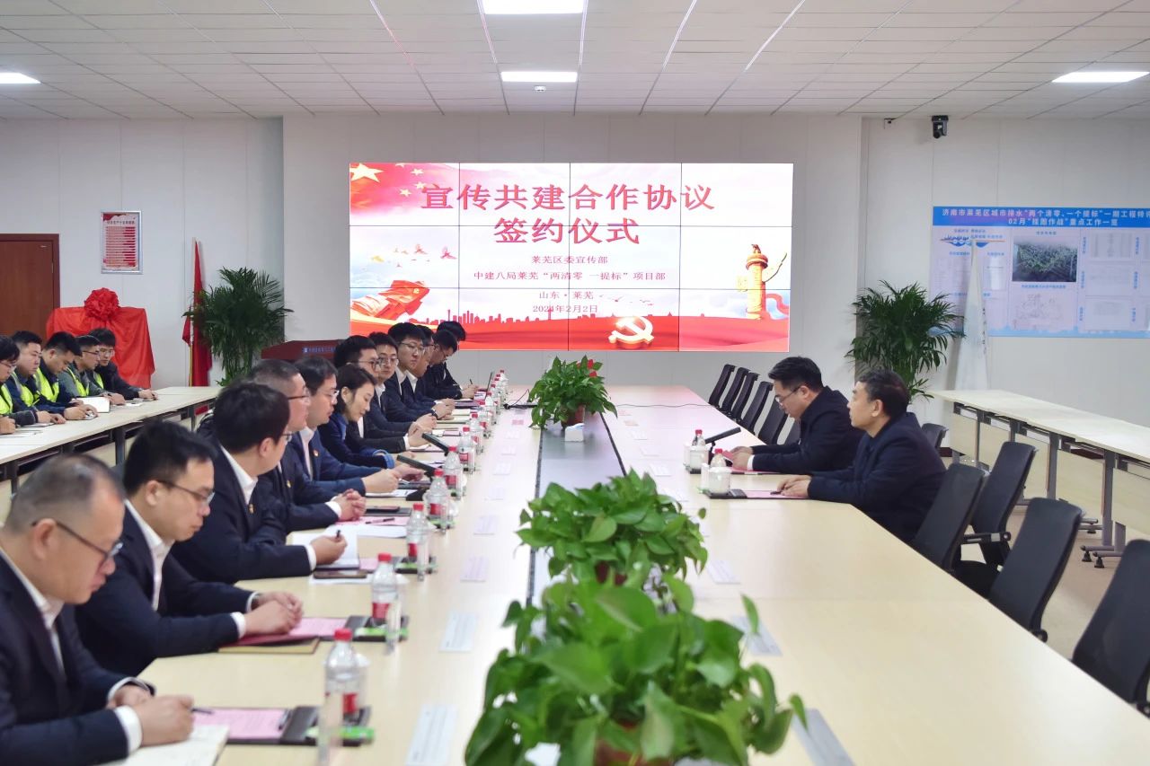 2月2日,濟(jì)南市萊蕪區(qū)委宣傳部與萊蕪“兩清零,一提標(biāo)”項目部舉行宣傳共建合作協(xié)議簽約儀式。萊蕪區(qū)委常委、宣傳部部長田沖,宣傳部副部長紀(jì)榮軍,中建八局一公司黨委副書記、工會主席聶麗,黨委工作部(企業(yè)文化部)、八局建投相關(guān)負(fù)責(zé)人、項目代表參加。