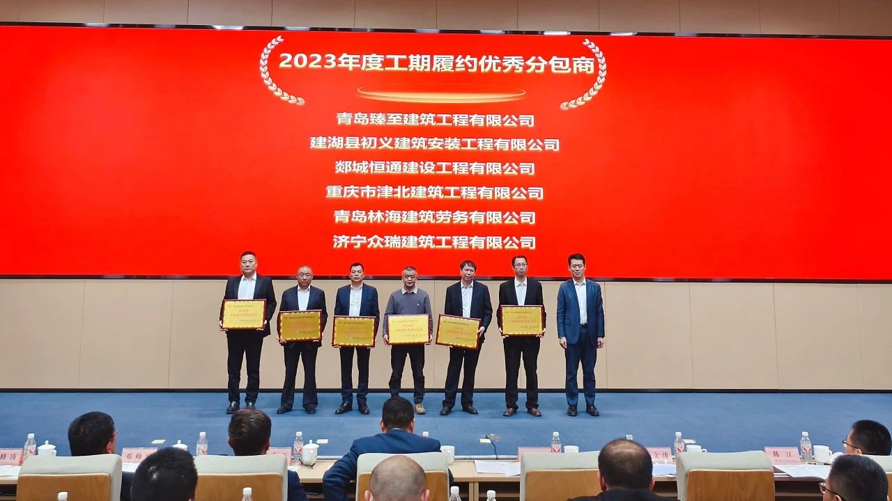 會(huì)上,觀看了中建八局一公司宣傳片;進(jìn)行了廉潔警示教育。表彰了2023年度5家優(yōu)秀機(jī)械租賃商,18家安全管理、質(zhì)量控制、工期履約優(yōu)秀分包商,30家三星級(jí)、四星級(jí)、五星級(jí)物資供應(yīng)商,5位優(yōu)秀分供商代表作經(jīng)驗(yàn)交流。