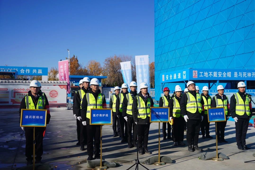每月組織開展危險源辨識會議,對危大工程實施安全旁站監(jiān)督,結(jié)合項目編制防高墜、防觸電等五大傷害及消防、防汛防洪等專項應急預案,承辦東營市2023年度建筑施工消防應急演練活動,累計開展應急演練5次,參加人數(shù)300人次。