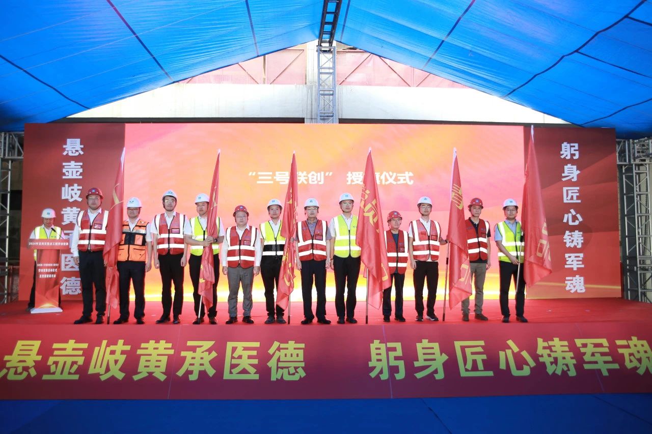 活動中,宣讀了黨建聯(lián)建和勞動競賽方案,簽訂了黨建聯(lián)建協(xié)議和競賽目標責任書,進行了“三號聯(lián)創(chuàng)”授旗儀式、項目廉潔文化示范點揭牌;參建單位代表進行集體宣誓,與會領(lǐng)導慰問了一線工友。