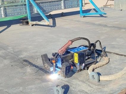 項目應(yīng)用物料運輸RFID跟蹤方法,科學(xué)劃定料場存儲量和單日運輸量,完成826車鋼構(gòu)件有序穿插入場,正序鋼框架和逆序鋼連廊同步拼裝,現(xiàn)場鋼結(jié)構(gòu)日均最大安裝量238.7噸,單月最大安裝量7162噸;應(yīng)用自動校準坡口火焰切割機器人,無導(dǎo)軌全位置爬行焊接機器人等新裝備,提升鋼結(jié)構(gòu)加工及安裝的效率與精度。