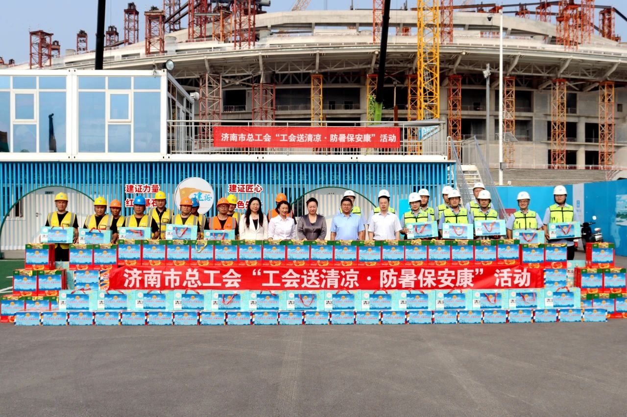 7月11日,濟(jì)南市總工會“工會送清涼 防暑保安康”活動走進(jìn)中建八局一公司承建的黃河體育中心專業(yè)足球場項目。濟(jì)南市總工會黨組成員、副主席宮俊卿,生產(chǎn)保護(hù)部部長盧召民,二級調(diào)研員王崇山,中建八局一公司黨委副書記、工會主席聶麗,工會工作部、濟(jì)南公司相關(guān)負(fù)責(zé)人,項目管理人員及工友代表參加活動。