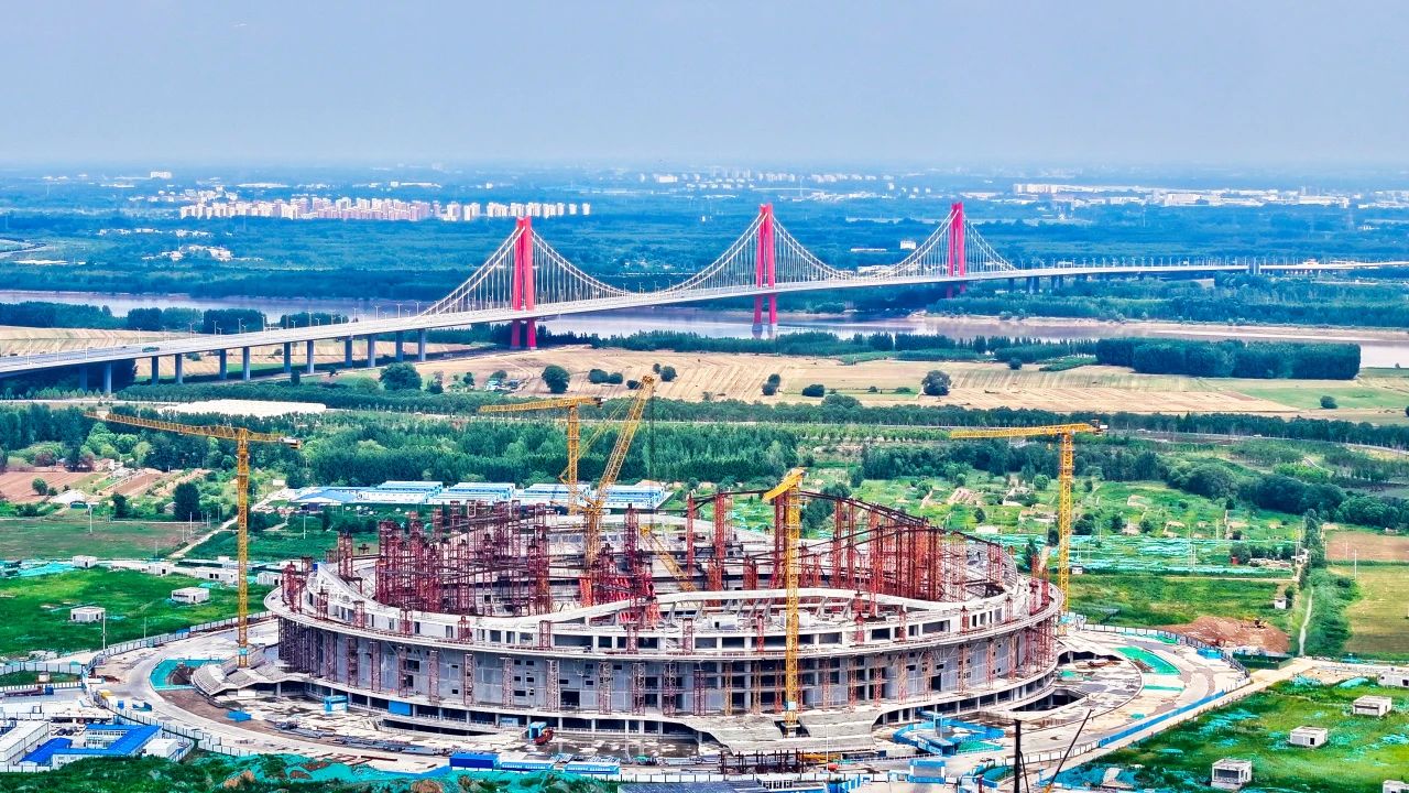 黃河體育中心專業(yè)足球場項目位于濟(jì)南新舊動能轉(zhuǎn)換起步區(qū),總建筑面積19.7萬平方米,采用世界杯FIFA最新標(biāo)準(zhǔn),是山東省首個6萬座專業(yè)足球場,黃河流域生態(tài)保護(hù)與高質(zhì)量發(fā)展戰(zhàn)略重大工程。目前,項目處于屋蓋鋼結(jié)構(gòu)施工階段,預(yù)計在2024年底完成合龍。