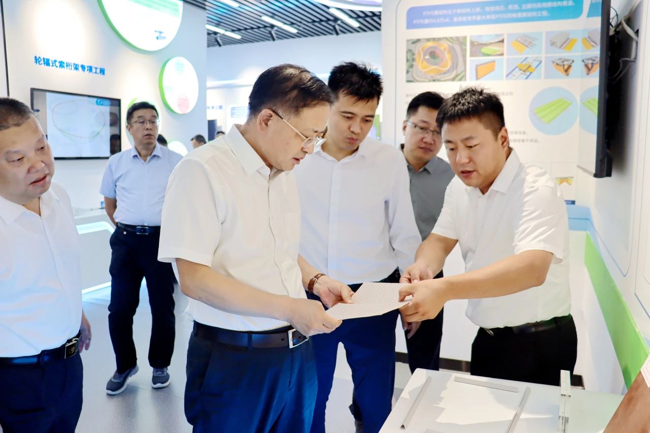 王潤曉一行深入施工現(xiàn)場,實地察看項目施工進展,詳細詢問安全質量管理、技術創(chuàng)新等內容,深入了解當前鋼結構拼裝、吊裝施工等重難點問題,參觀了項目綜合展廳,認真聽取公司發(fā)展歷程、項目定位特點、創(chuàng)新技術應用、黨群廉潔工作等情況介紹。