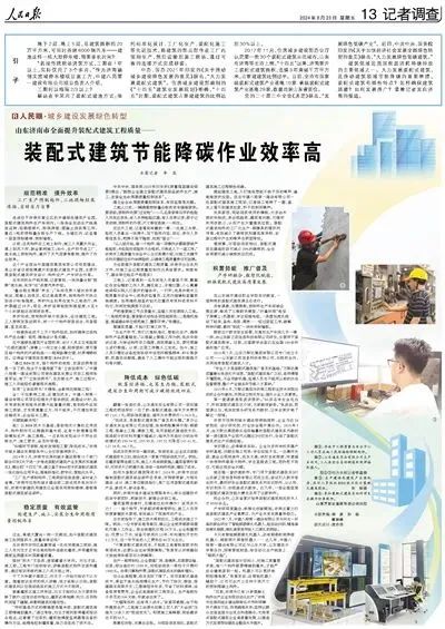 8月23日,人民日?qǐng)?bào)刊文《山東濟(jì)南市全面提升裝配式建筑工程質(zhì)量——裝配式建筑節(jié)能降碳作業(yè)效率高》,報(bào)道中建八局投資建設(shè)的中國(guó)建筑綠色產(chǎn)業(yè)園(濟(jì)南)長(zhǎng)期致力于裝配式建筑產(chǎn)業(yè)發(fā)展,加快構(gòu)建綠色制造體系和綠色建筑產(chǎn)品產(chǎn)業(yè)鏈,推廣應(yīng)用鋁合金模板、爬架、鍍鋅方管、單元幕墻,創(chuàng)新研發(fā)透光、雕刻、高性能混凝土、智能裝配設(shè)備等30余種綠色建筑產(chǎn)品和技術(shù)。