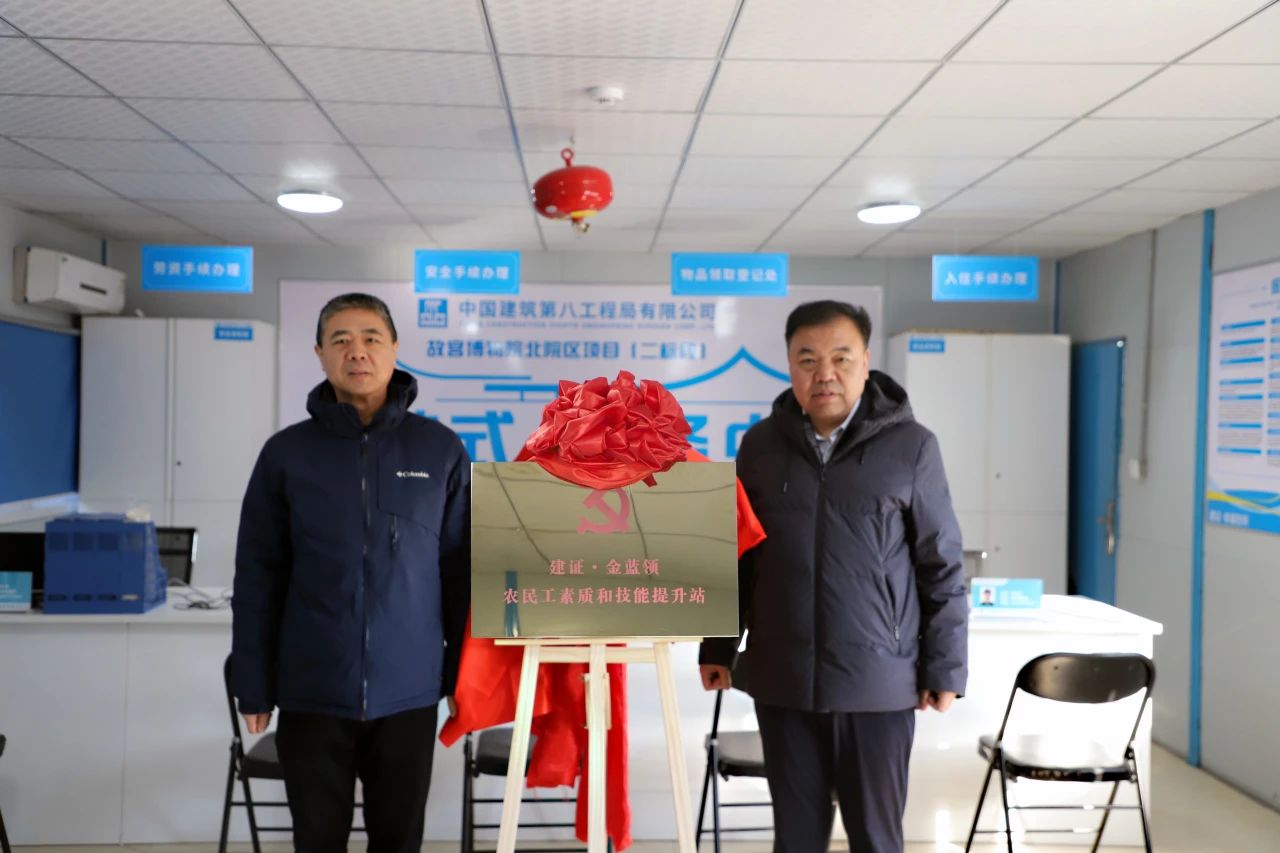 期間,吳疆一行參觀調(diào)研了項(xiàng)目綜合智慧展廳、職工書屋、幸福工友村等設(shè)施,認(rèn)真了解了項(xiàng)目整體概況、管理舉措、工會(huì)建設(shè)等方面的情況,對(duì)各項(xiàng)工作給予了充分肯定。吳疆與劉建波共同為項(xiàng)目“建證·金藍(lán)領(lǐng)”農(nóng)民工素質(zhì)和技能提升站揭牌。