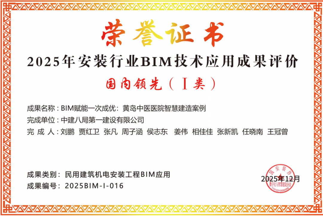 會(huì)上,開展了2025年安裝行業(yè)BIM技術(shù)應(yīng)用成果評(píng)價(jià)活動(dòng),進(jìn)行了《智能建造 智創(chuàng)未來(lái)》專題講座,并為優(yōu)秀成果頒發(fā)證書。公司榮獲2個(gè)國(guó)內(nèi)領(lǐng)先(Ⅰ類) 成果,1個(gè)國(guó)內(nèi)先進(jìn)、行業(yè)領(lǐng)先(Ⅱ類) 成果,1個(gè)行業(yè)先進(jìn)(Ⅲ類)成果。