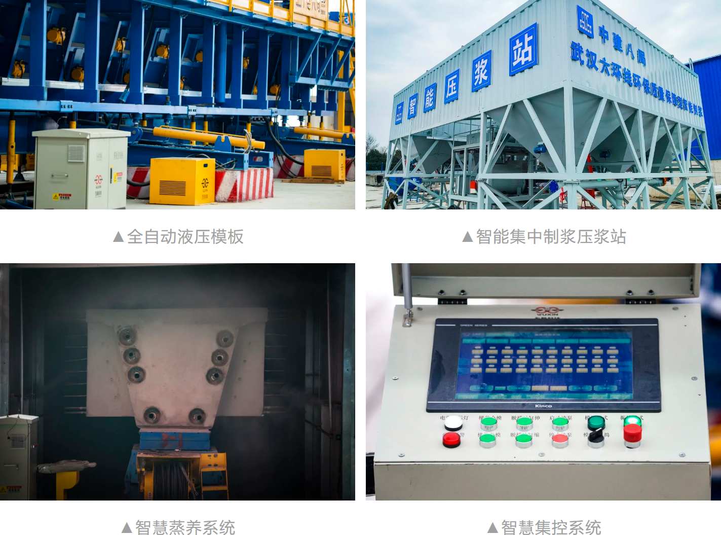 質(zhì)量管控展區(qū)集中展示了項(xiàng)目智慧梁場(chǎng)的智能化生產(chǎn)線和施工工藝,包括全自動(dòng)液壓模板、智能集中制漿壓漿站、移動(dòng)底模臺(tái)車、智能鋼筋彎曲中心等設(shè)備,可實(shí)現(xiàn)各工序 “流水加工、無縫銜接”,生產(chǎn)線配備 “智慧集控系統(tǒng)”,提升梁體預(yù)制效率 40%。