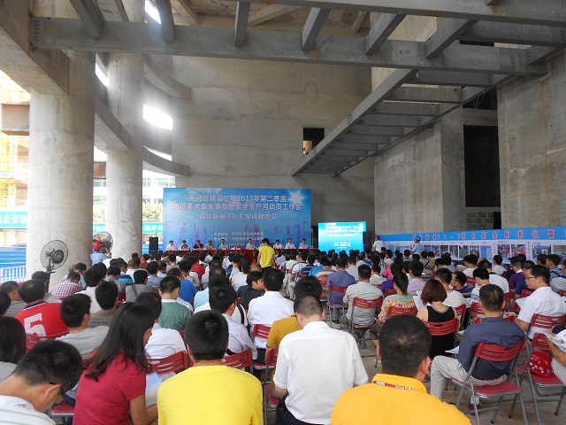 5月31日,由廣州市天河區(qū)建設和水務局主辦的現(xiàn)場觀摩會在珠江新城F1-1項目召開,廣州市天河區(qū)區(qū)委常委、常務副區(qū)長藍小環(huán)、天河區(qū)建設和水務局局長許文進、天河區(qū)安全生產(chǎn)監(jiān)督管理局執(zhí)法分局局長李守軍、廣州市建委質(zhì)安處處長王大通、天河區(qū)建設工程質(zhì)量安全監(jiān)督站副站長蔡文專及全站監(jiān)督員、中國建筑股份有限公司駐廣東辦事處市場處處長鄭順、中國建筑第八工程局有限公司廣州辦事處楊深奎、一公司廣東分公司總經(jīng)理范廣合、書記程建真及分公司領導班子其他成員、僑鑫集團地產(chǎn)總裁黃衛(wèi)平、廣州宏達工程顧問有限公司總經(jīng)理張全喜和天河區(qū)內(nèi)一百多個在建項目的建設單位、施工單位、監(jiān)理單位項目負責人合共350余人參加了觀摩會。