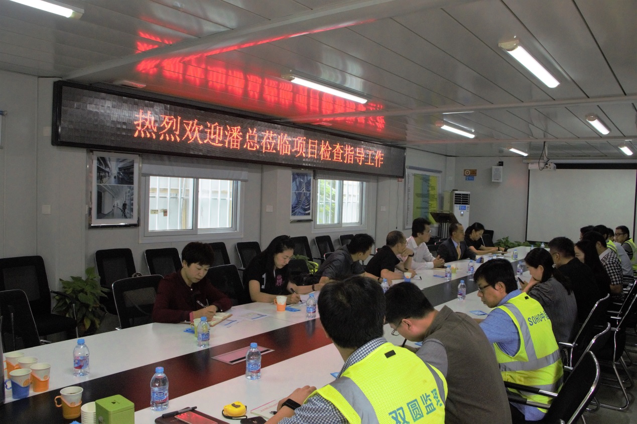 潘石屹一行首先參觀了施工現(xiàn)場,對現(xiàn)場的幕墻質(zhì)量及其安裝定位進行了詳細檢查。在隨后的檢查會議中,各相關(guān)參建單位都做了詳細全面的匯報。最后,潘石屹表示,希望八局繼續(xù)保持現(xiàn)有品質(zhì),同時繼續(xù)加強現(xiàn)場管理,嚴把質(zhì)量關(guān),精益求精。