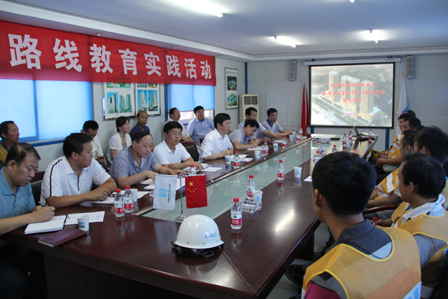 8月9號下午,濟南市紀委書記慕建民、市建委書記張洪躍一行來到奧體金融中心A棟樓項目開展黨的群眾路線教育實踐活動,魯班公司副總經(jīng)理阮云豐、總工程師史振春、局總經(jīng)理助理、山東分局黨委書記王克復(fù)、公司黨委書記許紅、紀委書記薛樹海、中建一局山東公司總經(jīng)理張炳成及農(nóng)民工兄弟代表參加。
