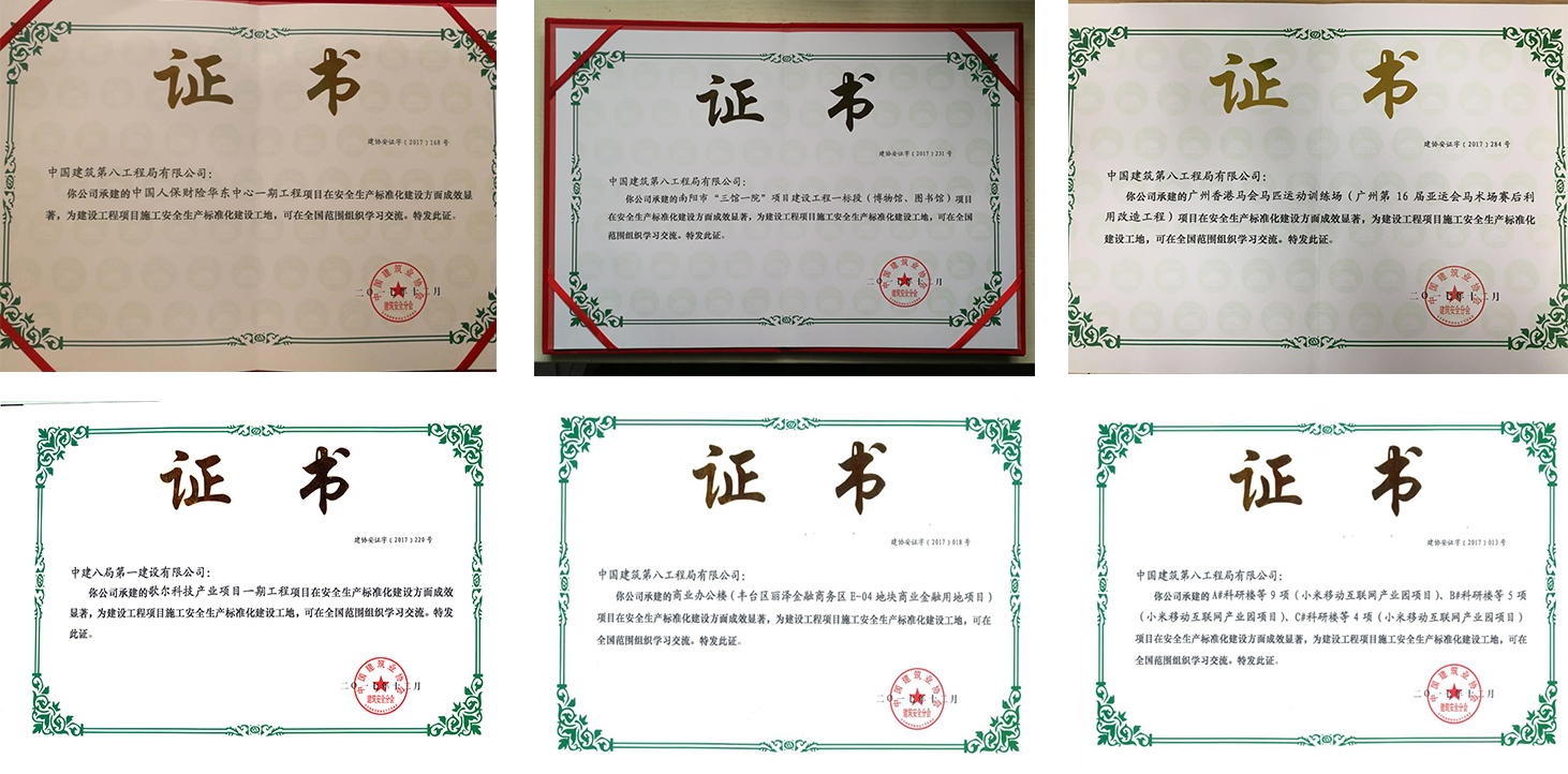 公司青島歌爾科技產(chǎn)業(yè)項目、北京麗澤soho項目、北京小米移動互聯(lián)網(wǎng)產(chǎn)業(yè)園項目、廣州香港馬會馬匹運動訓(xùn)練場項目、南陽市三館一院項目、合肥中國人保財險華東中心一期工程項目等6個項目獲評2017年度“建設(shè)工程項目施工安全生產(chǎn)標(biāo)準(zhǔn)化工地”稱號。