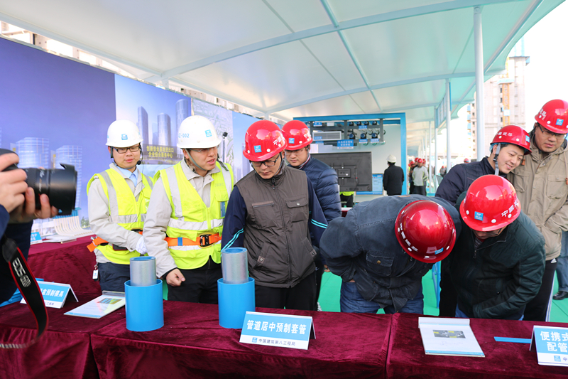 觀摩團一行首先在項目會議室聽取了項目關(guān)于“新技術(shù)應用、質(zhì)量常見問題的亮點做法、BIM應用于智慧建造、揚塵治理措施”等介紹。隨后,觀摩團在項目經(jīng)理張志剛的引導下,先后參觀了海綿城市、透視混凝土地面、鋼板道路、風光互補太陽能路燈、新技術(shù)應用樣板展示區(qū)、各分項工程亮點做法展示區(qū)、智慧建造體驗館、工序樣板層和交房樣板層、安全體驗區(qū)。截至26日下午17時,項目當天已累計接待觀摩人員2125人,預計27日觀摩人數(shù)將達到3000余人。