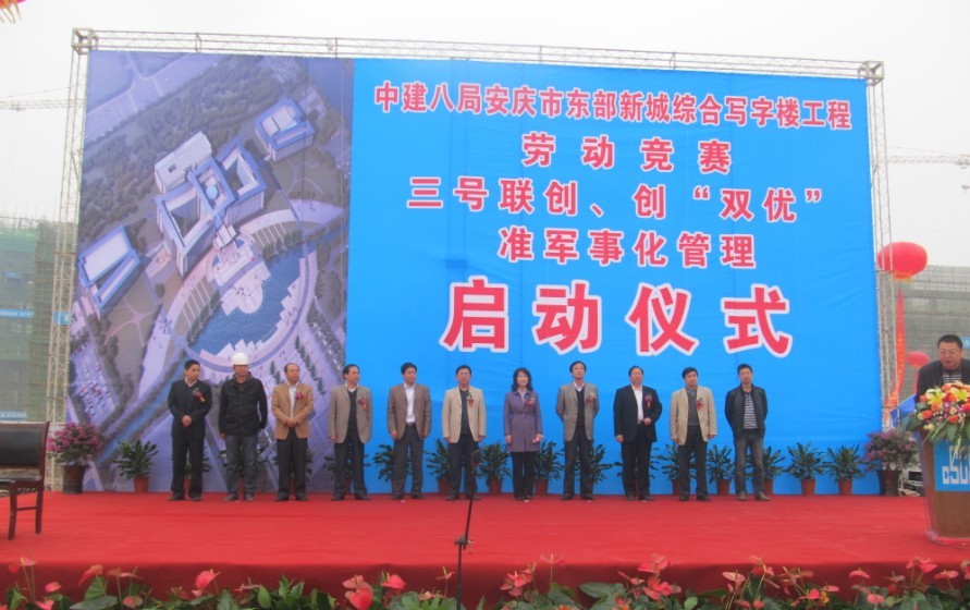 安慶市市政府研究室主任吳邦本作為業(yè)主代表在大會上作了重要講話。對公司在安慶市東部新城綜合寫字樓項目建設中取得的成績及此次活動給予了充分肯定,他指出安慶市東部新城綜合寫字樓項目是安慶市重點項目,中建八局是一支有著優(yōu)良傳統(tǒng)的中國建筑“國家隊”,在南征北戰(zhàn),報效祖國、奉獻社會的建設征程上曾經做出了許多驕人的業(yè)績,形成了“特別能吃苦,特別能戰(zhàn)斗,特別能奉獻”的鐵軍精神,希望八局在安慶市東部新城綜合寫字樓工程建設中,繼續(xù)保持和發(fā)揚鐵軍傳統(tǒng),充分發(fā)揮黨員的先鋒模范作用、充分發(fā)揮工人階級的主人翁精神,充分發(fā)揮青年的生力軍作用,以一流的速度、一流的質量把工程建設成精品工程,安全工程、滿意工程和廉潔工程。