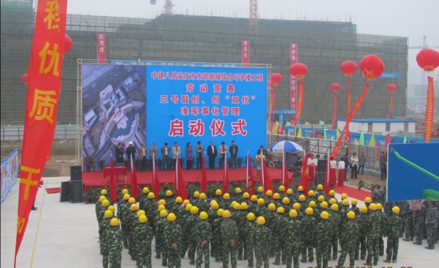 安慶市東部新城綜合寫字樓工程舉行勞動競賽、“三號聯(lián)創(chuàng)”、創(chuàng)雙優(yōu)、準軍事化管理啟動儀式