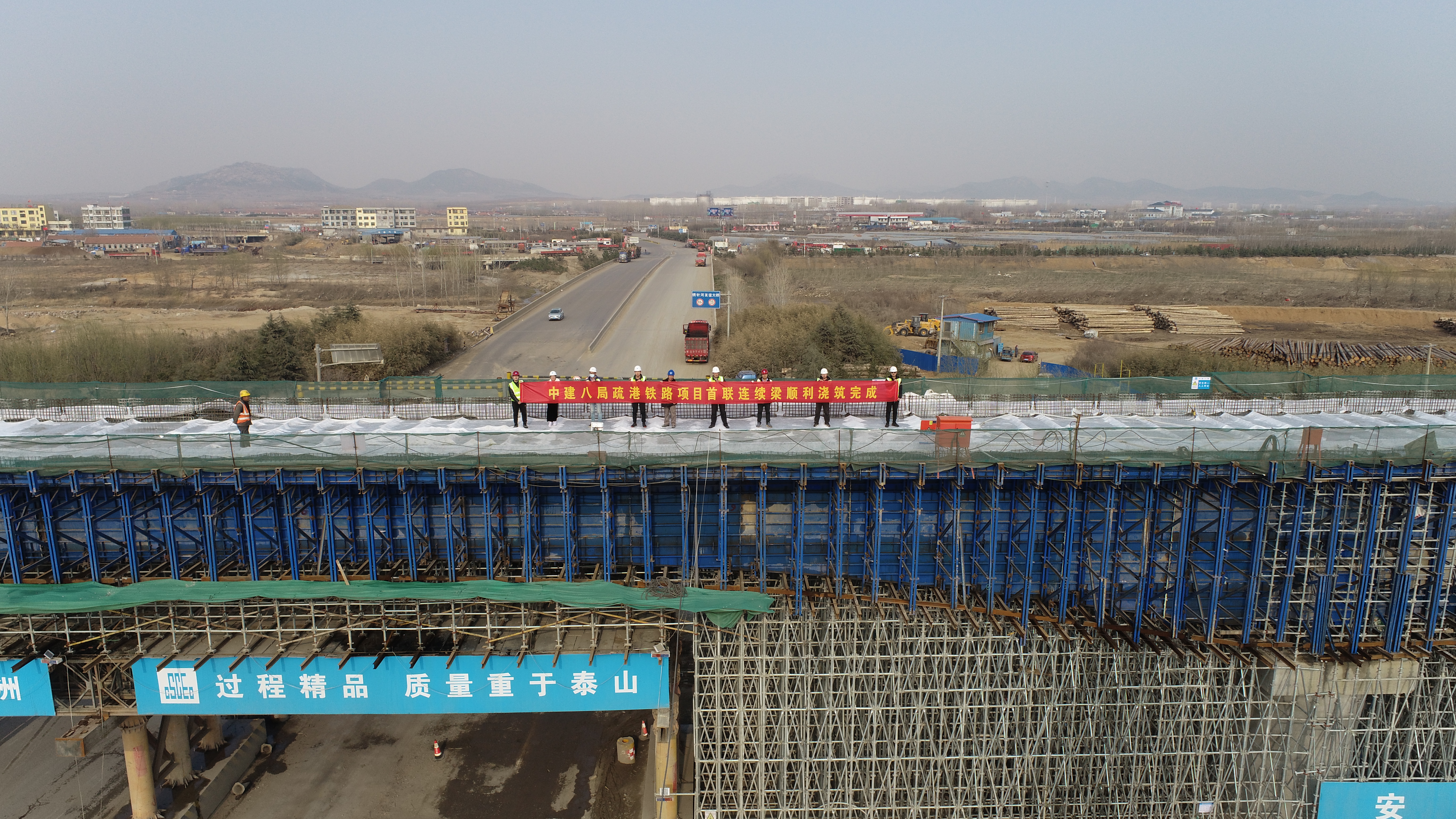 疏港鐵路項目完成全線首聯支架現澆連續(xù)梁澆筑