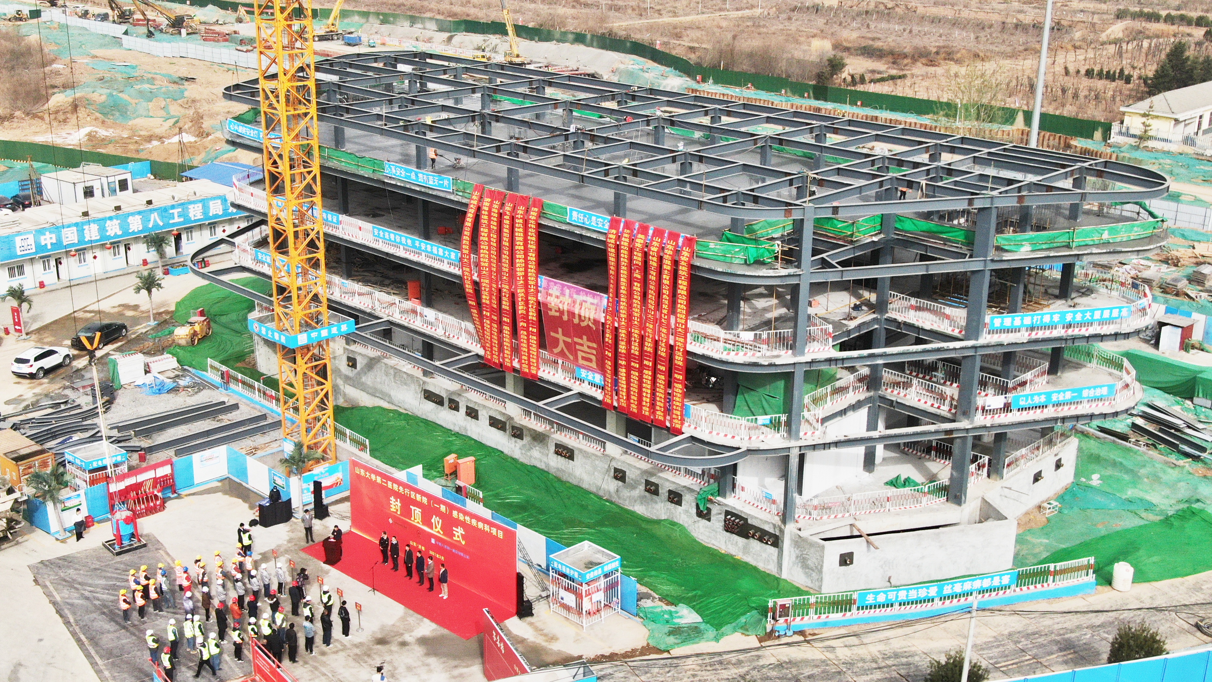 山大二院北院區(qū)首棟單體主體封頂!