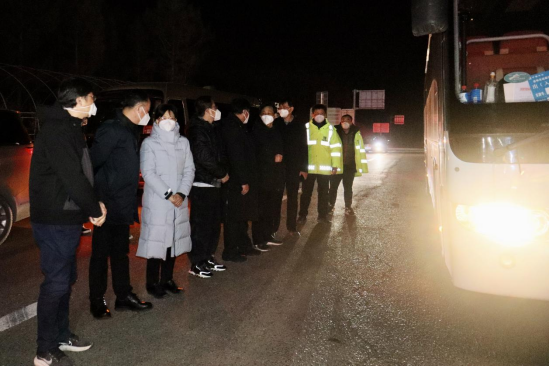 4月3日,援建隊(duì)伍圓滿完成施工任務(wù)。當(dāng)晚,吉林市政府、中建集團(tuán)黨組副書記、總經(jīng)理張兆祥,黨組成員、副總經(jīng)理單廣袖等相關(guān)領(lǐng)導(dǎo)為大家送行并感謝援建隊(duì)伍在此期間做出的貢獻(xiàn)。在相關(guān)政府部門及中建八局支持協(xié)助下,所有援建人員順利踏上歸途。