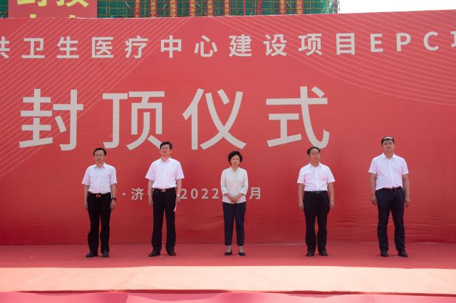 2022年5月29日上午,濟(jì)寧市公共衛(wèi)生醫(yī)療中心項(xiàng)目舉行封頂儀式,濟(jì)寧市衛(wèi)健委黨委書記、主任魯先靈,濟(jì)寧市任城區(qū)副區(qū)長孔繁華,濟(jì)寧市公共衛(wèi)生醫(yī)療中心黨委書記侯春生,濟(jì)寧市發(fā)改委二級調(diào)研員袁文霞,市都市區(qū)一體化指揮部四級調(diào)研員孫德化,濟(jì)寧市第一人民醫(yī)院黨委副書記、院長鐘海濤,濟(jì)寧衛(wèi)校黨委書記、校長駱榮暉、濟(jì)寧市中醫(yī)醫(yī)院院長王祥生,中建八局第一建設(shè)有限公司魯南公司經(jīng)理李輝,山東班锘工程項(xiàng)目管理有限公司總經(jīng)理張書明等出席本次封頂儀式。